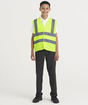 Certified EN 1150:1999 HV Yellow & HV Orange only. Solid colours Non Certified. Full front tear and release fastening. Over shoulder and around body reflective tape.
